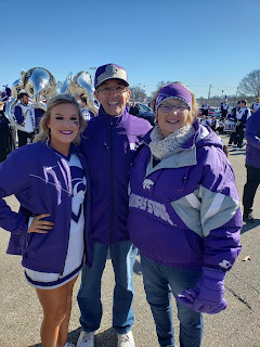 The K-State band was warming up near us, so we walked over to listen and take some pictures and video. My Mom’s cousin’s daughter Reagan is a K-State cheerleader so my Mom tried to find her by walking on the various buses until she found her. We chatted with with Reagan for a bit and got a couple pictures.